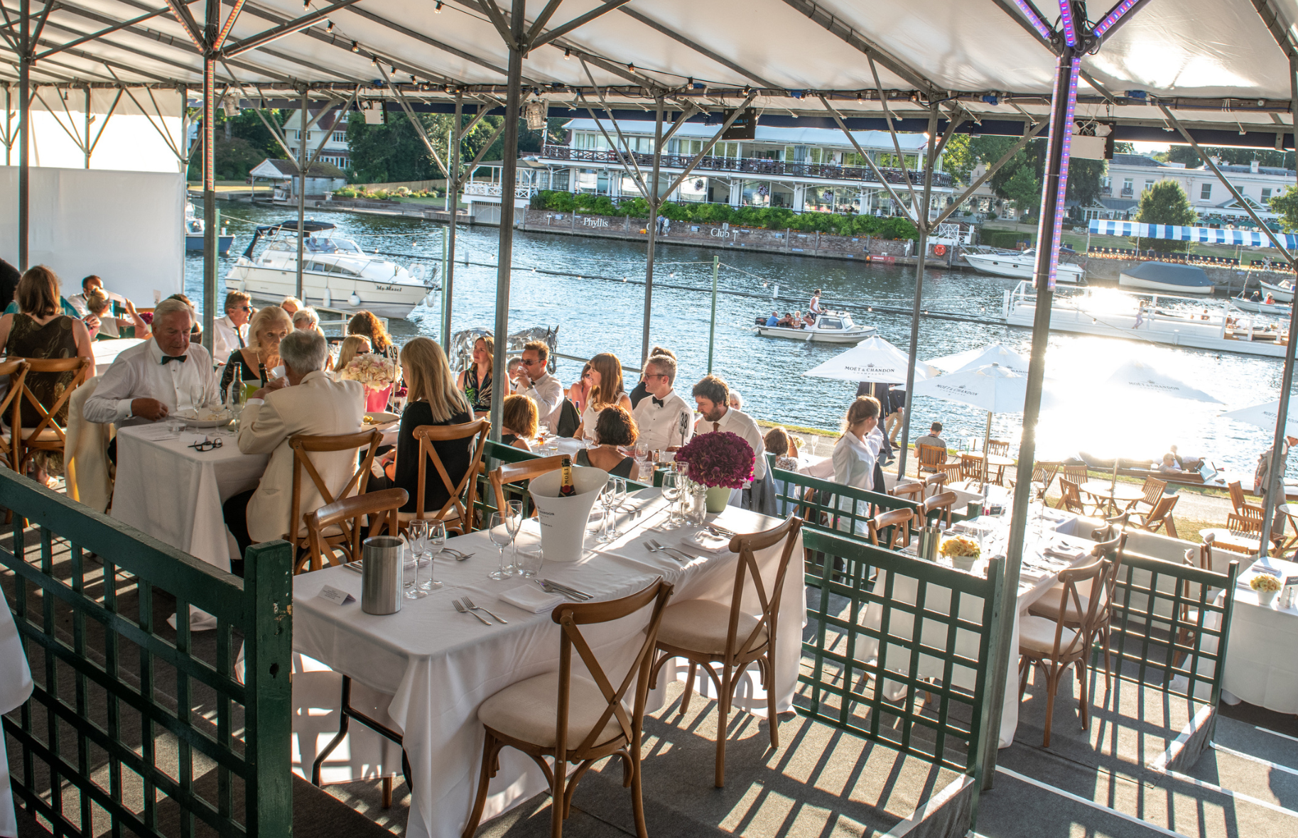 Indulge in an unforgettable dining experience at the Terrace Restaurant, perfectly positioned to overlook the picturesque river views that make Henley Festival so special.
